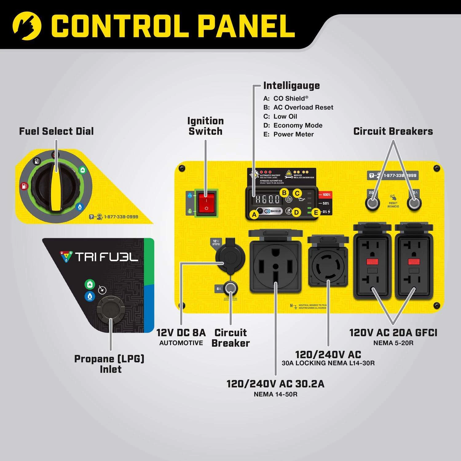 | What's Included | Engine Oil, Oil Funnel, Propane (LPG) Hose, Natural Gas Hose with NPT Adapter, USB Adapter, Wheel Kit and Battery |